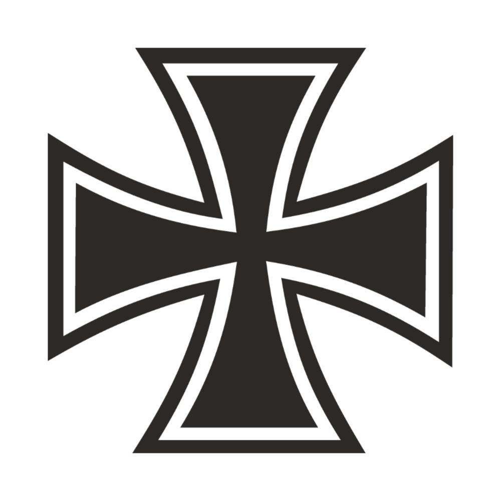 The classic Iron Cross sticker commonly seen on old Volkswagens, hot rods, choppers, and 1960s–2000s custom culture.